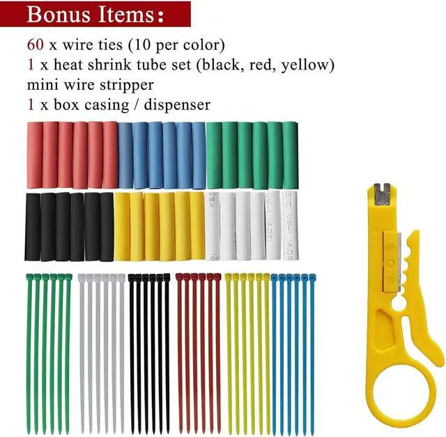 Practical Distribution Box: Variety of wire colors. The wires are contained in a convenient box with a distribution hole for each color, which is durable and keeps the wire spools well organized, easy to use and, most importantly, free of annoying tangles