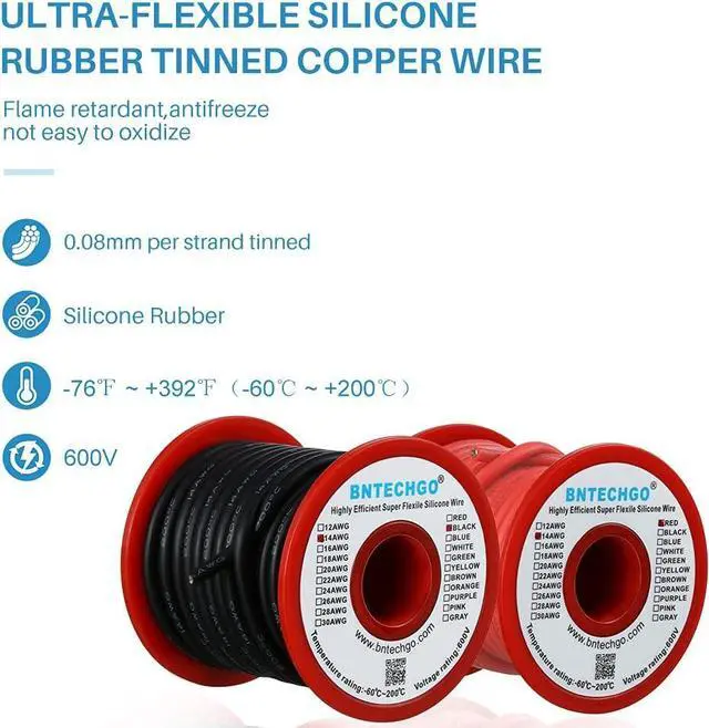 14 gauge silicone wire spool: 2 colors, red and black, each color 25 ft, total 50 feet.