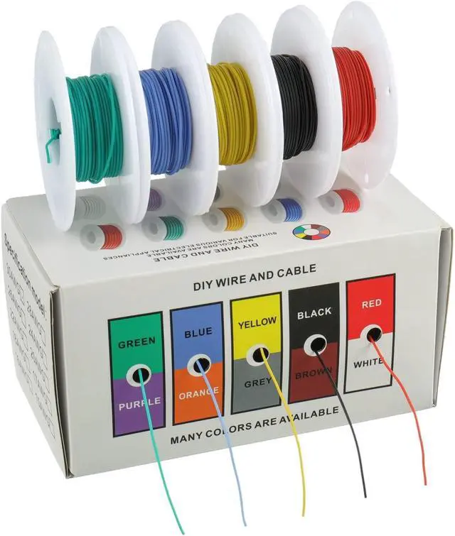 Package Include: 30 Gauge Silicone Stranded Wire 32.81 ft of Each 5 Different Colors (red, black, yellow, blue, green), total 164.05 ft With plus 20 2mm Heat Shrink Tubings (5 Colors 5pcs Each Color) and a Mini wire stripper