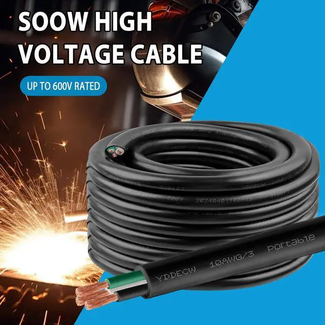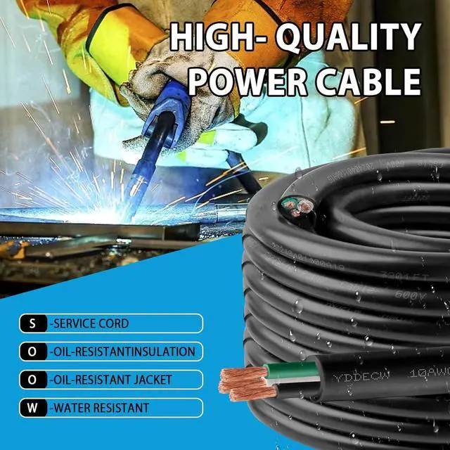 Tough Conditions: Our Heavy Duty 10 AWG 600V SOOW (Service, Oil, and Water Resistant) cable (25 FT - 3 Conductor) is the first choice for industrial, commercial, and outdoor uses. With its insulated design and robust PVC jacket, it' s built to withstand oils, acids, water, and chemicals, ensuring reliability in even the harsh environments.