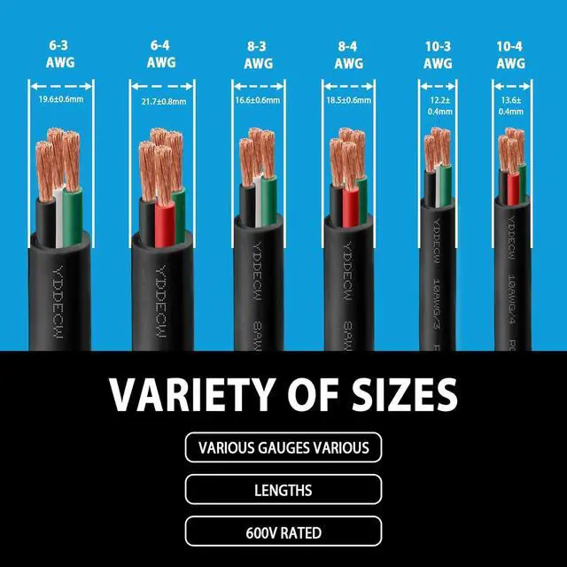 You Will Receive: a 12.2 mm diameter SOOW cable cord wire, 10AWG - 3 Conductor, 25 ft in length, made from stranded pure copper conductor material.