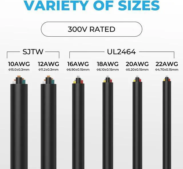 Specification: 10/3 wire, outside diameter of Jacket 15± 0.3 mm, length is 10 ft, 300V, SJTW