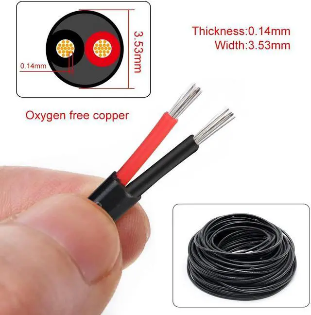 [Easy to Use]: Stranded electric wire, the 2 conductor Red & Black Tinned Copper Hookup Wire is flexible, easy to solder, that is for low voltage(5V-12V-24V) installations