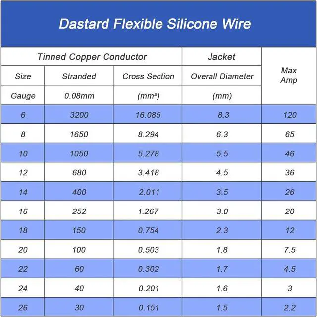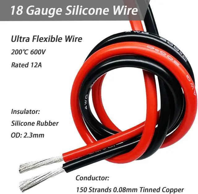 MaterialHigh-purity Tinned Oxygen-free Copper Conductor & Silicone Rubber Insulator. 18 Gauge stranded wire is easy to handling, stripping, welding & crimping.
