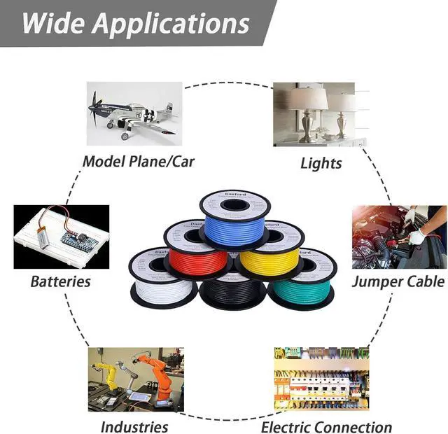Applications18AWG battery wire Widely used for RC Lipo batteries, automotives, solar panel, motor lead wire, model planes, model cars, model ships, lamps, electric heating appliances etc.