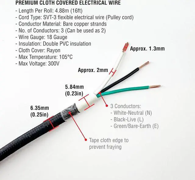 Perfect for updating your antique/vintage portable lamps, pendant lighting, floor lamps, clocks, radios, fans and other small household appliances.