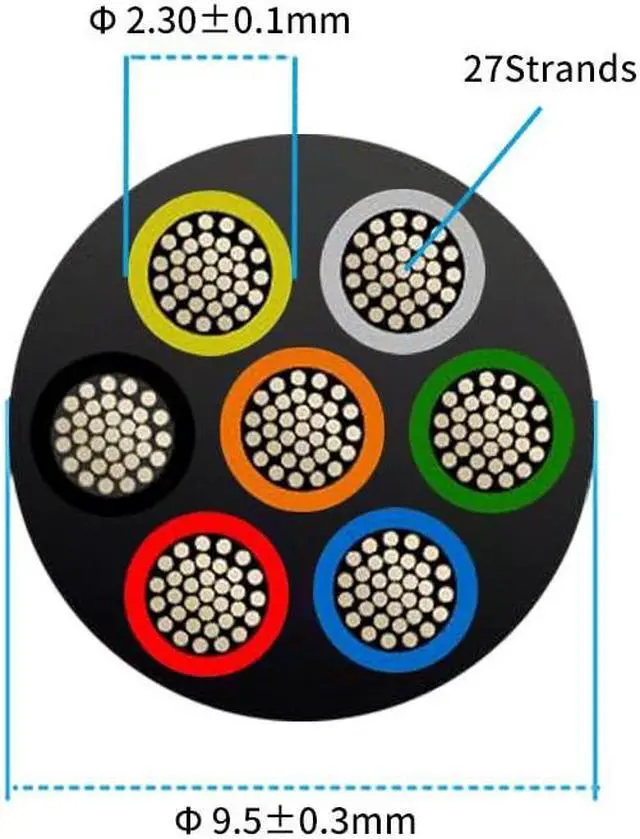 High ConductivityUL2464 16 gauge 7 conductor wire each cable contains 27 strands of 0.254 mm tinned copper wire. High purity Stranded oxygen-free copper with tin-plated, specification features high conductivity, low resistance, Ultra-Low eccentricity, better corrosion resistance, oxidation resistance and soft can be bent arbitrarily.
