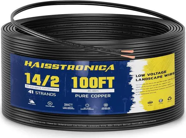 Safety First: The haisstronica 14/2 low voltage landscape wire features VW-1 fire resistant, North American UL CERTIFICATION Standards, RoHS compliant. Provides consistent performance over the years, backed by a robust warranty.