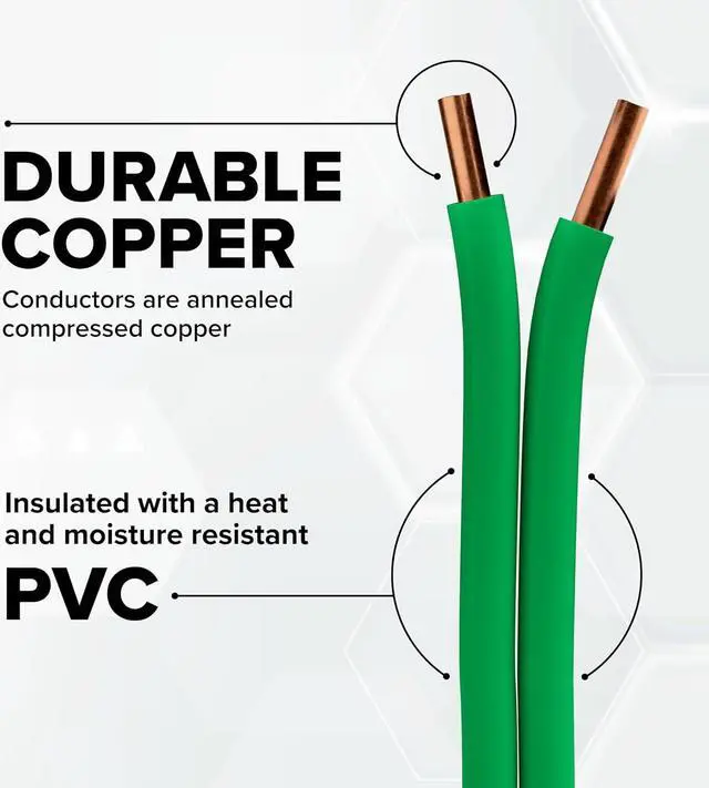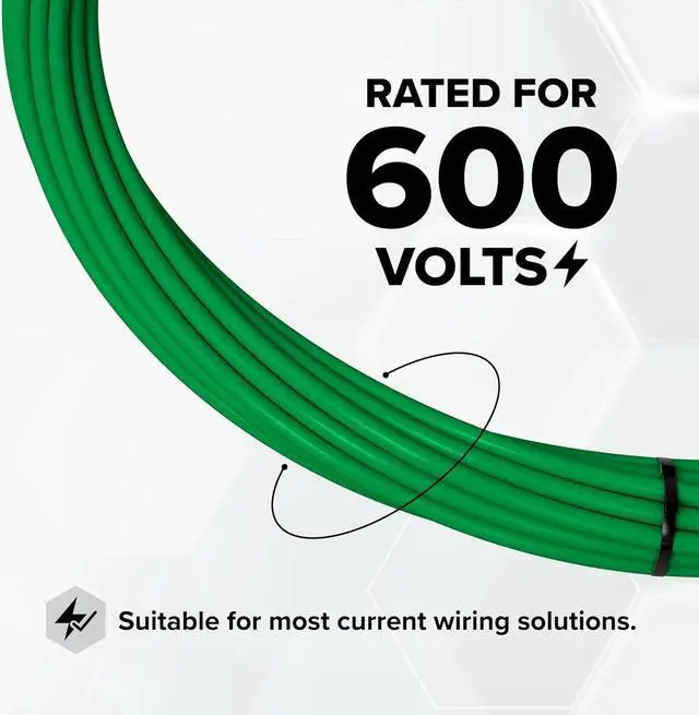 Includes: 50 feet (17 Yards / 600 Inches / 15 Meters) of Solid Copper - Green Jacketed - THHN / THWN - Building Wire / Grounding Wire / Electrical Wire