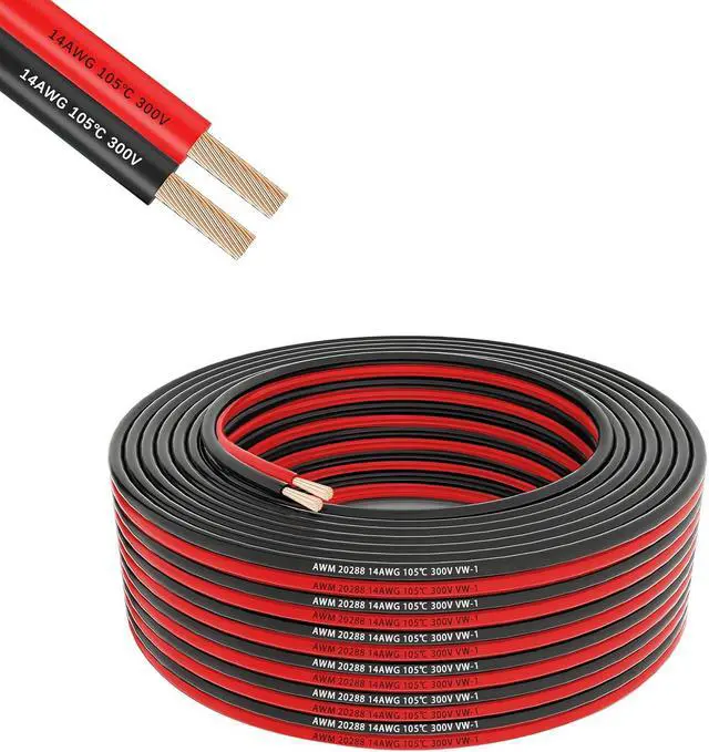 Specification14 gauge 2 pin wire kit: Total 100ft(Black/50ft+Red/50ft), 2