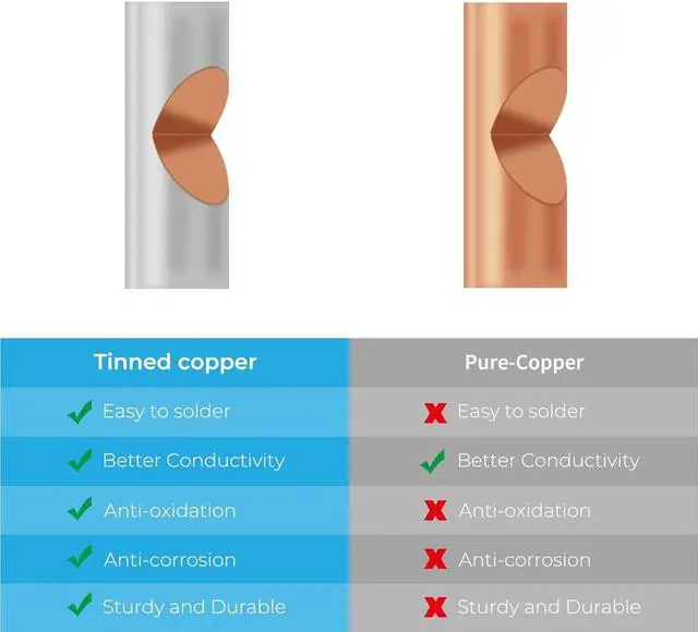 Tinned Copper Wire: More corrosion resistant than pure copper and better for soldering