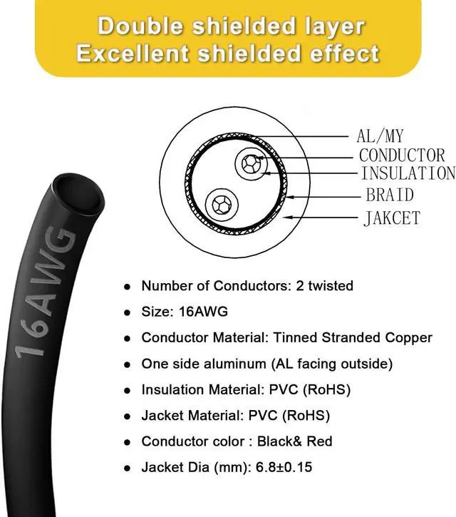 Excellent shielded effectThere are double shielded layers(Aluminim& tinned copper) to achieve premium shielded effect. The shielding layer can shield this electromagnetic field inside the cable. Shielded cables also serve as grounding protection: if there is damage to the core wire of the cable, the leaked current can flow along the shielding layer, such as the grounding grid. At this point, shielded cables serve as safety protection.
