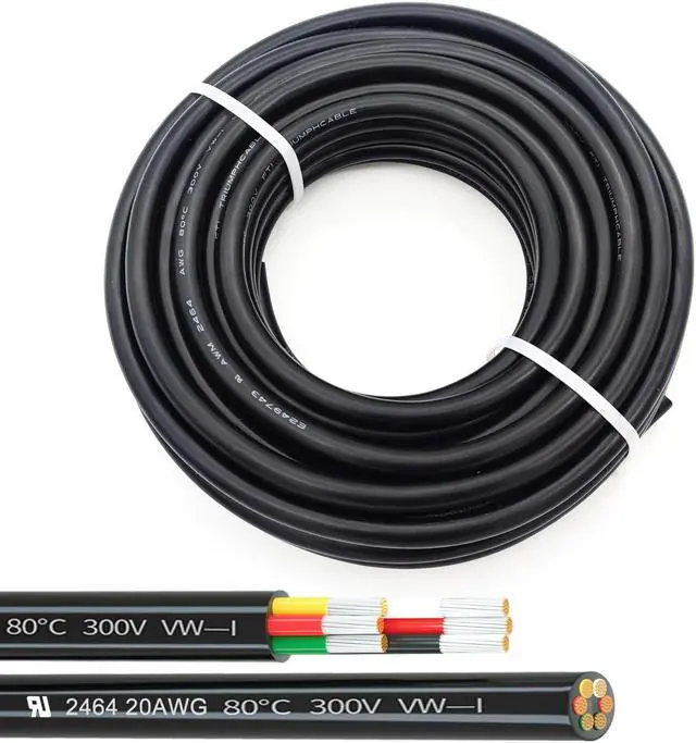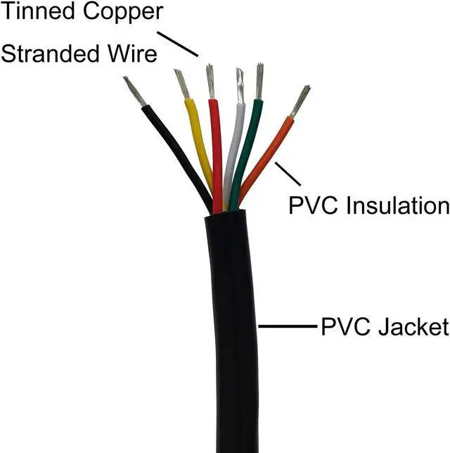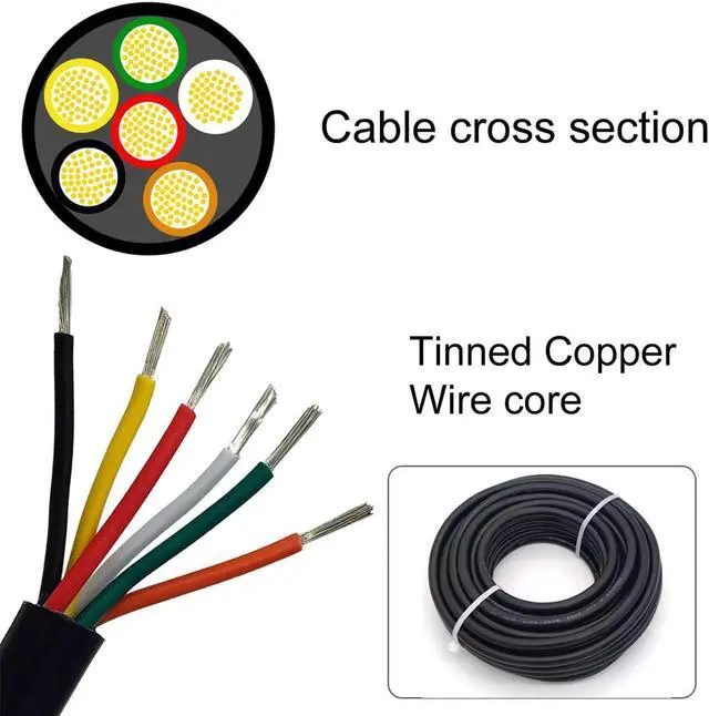 Conductors: 20 Awg (6 PVC insulated conductors red yellow green white orange and black) Rated voltage 300V, rated temperature 80°C