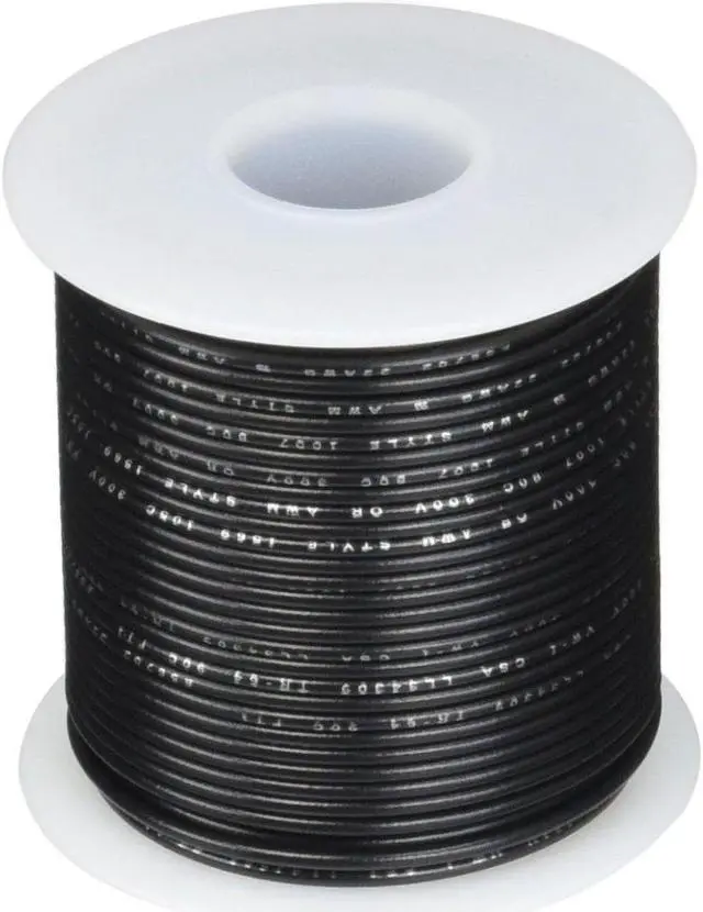 Remington Industries 22UL1007STRBLA UL1007 22 AWG Gauge Stranded Hook-Up Wire, 300V, 0.0253" Diameter, 100' Length, Black