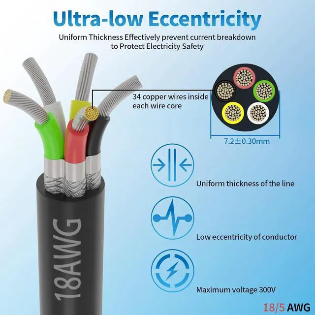 DURABLE MATERIAL: The 18/5 shielded wire has a PVC jacket of uniform thickness. It is flame retardant, safe and stable, anti-aging, acid and alkali resistant, easy to bend, etc. Flame retardant passes the test standards of VW-1 and FT1