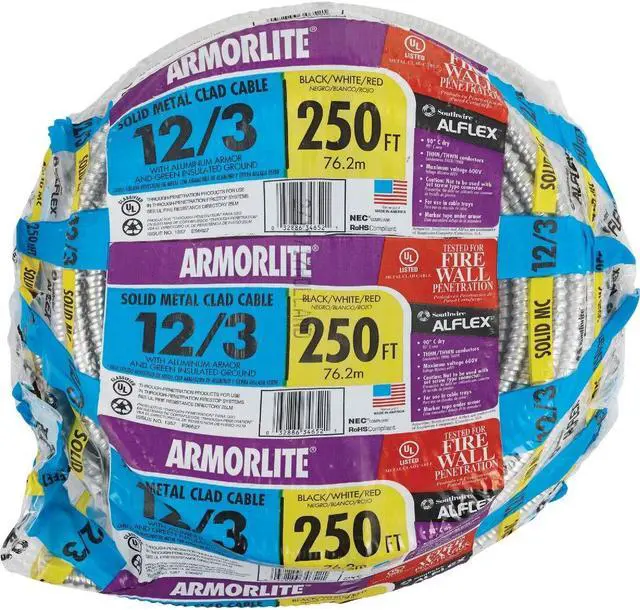 Armor lite Type Mc Aluminum Armored Cable, 12/3, 600 Volts, 250 Ft. Coil