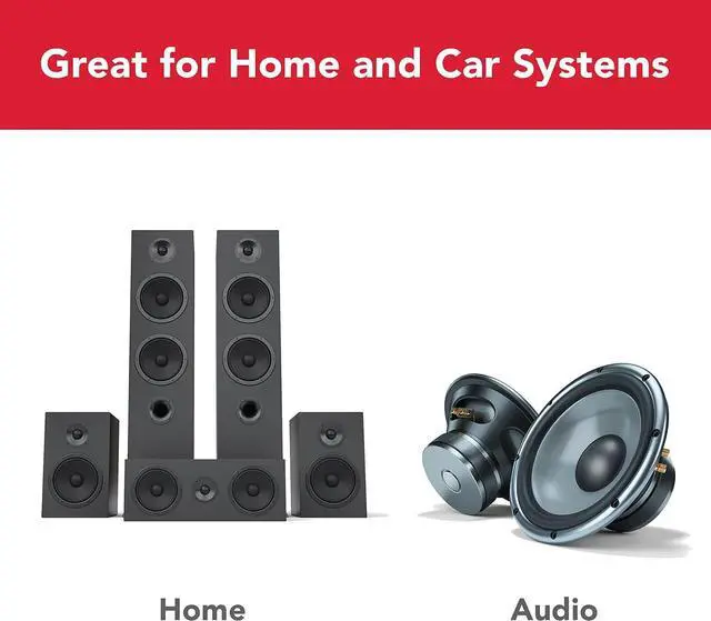 • Connects speakers to A/V receiver or amplifier