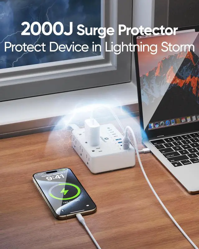 Surge Protector with Switch: This surge protector features 1080J surge protection, safeguarding your appliances from the impact of surges. Equipped with an overload protection switch to ensure the safety of your electronic products