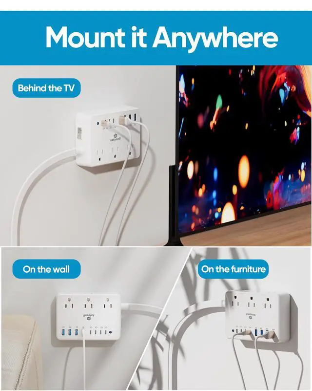 Wall Mountable and Space-Saving: Mounting holes on the back allow the strip to be wall-mounted, 3-Side space and small size saves space and is perfect for dormitory, room, living room, office