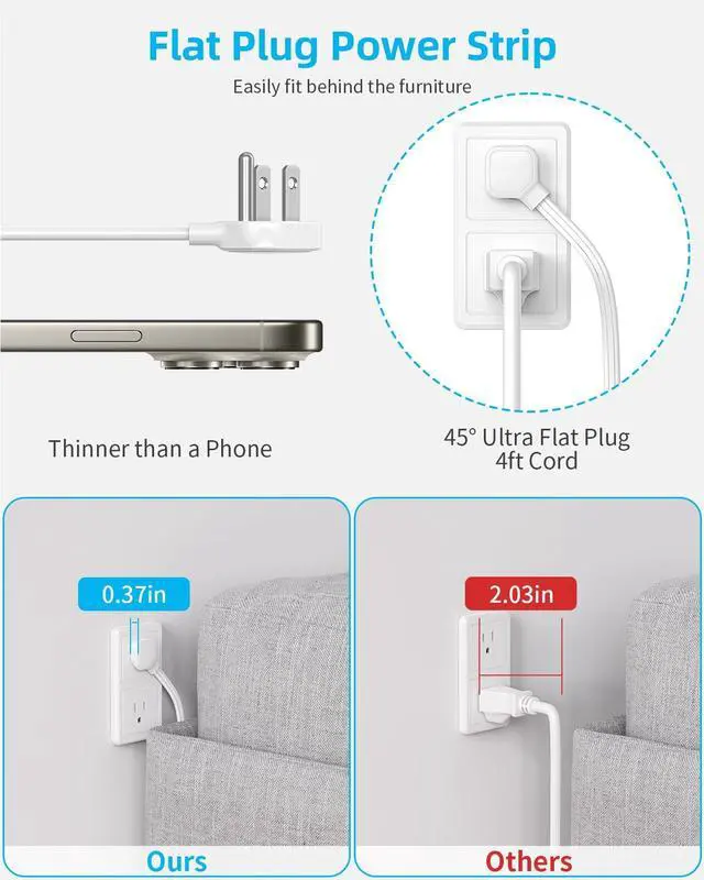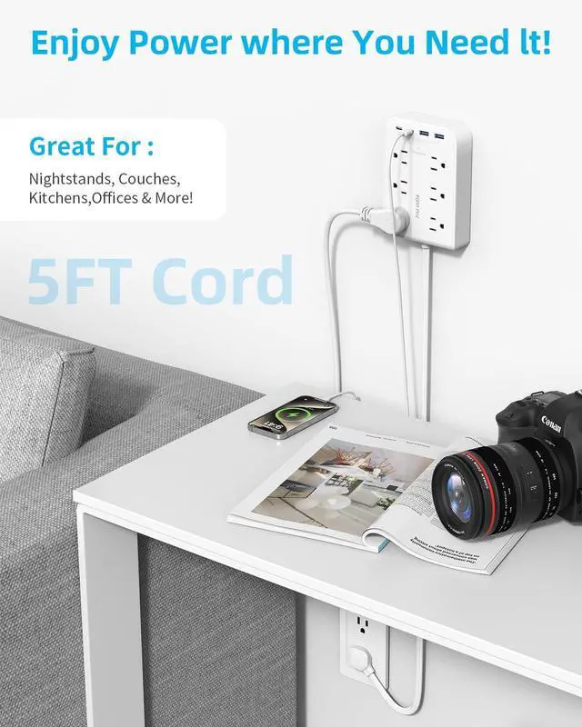 Your Personal Voltage Shield. Built-in 350-joule surge protector, this power strip safeguards all your connected devices from sudden voltage spikes.