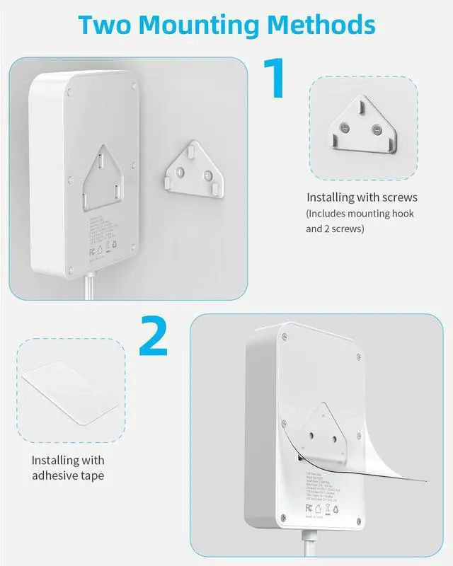 Mounting the power strip in the proper location by using either the included adhesive pad or screws.