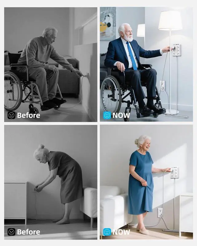 The magical outlet that stick to the wall can be adjusted to the original sockets near the floor for better use by the elderly.