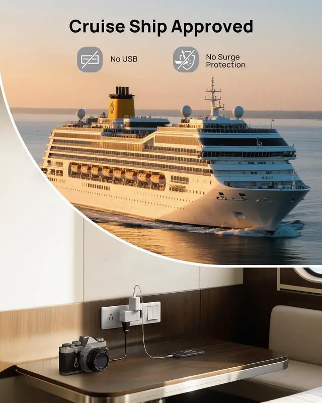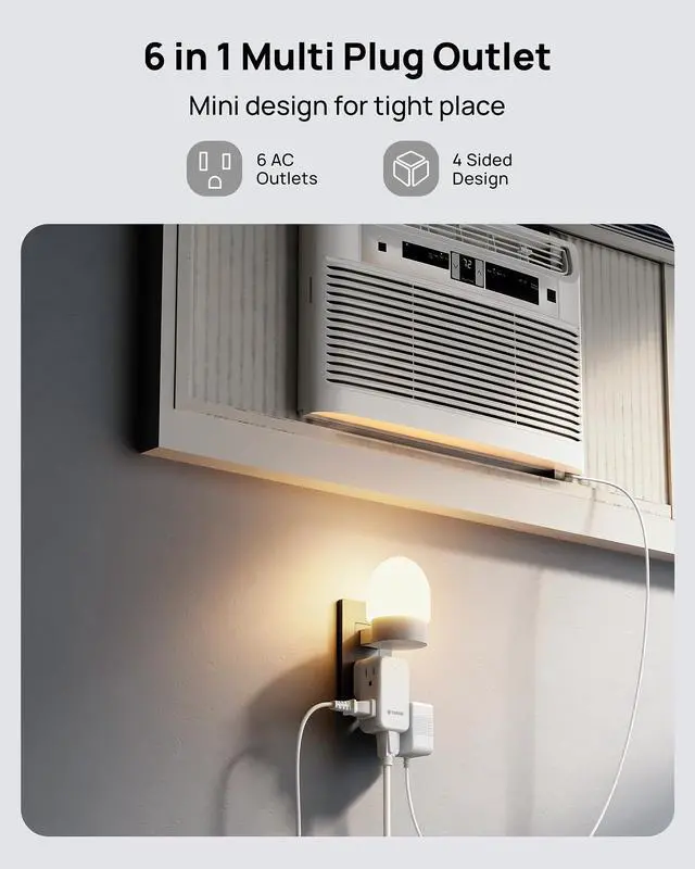 | Feature | 360° rotating plug, 6 AC outlet, potable size, sideways plug |