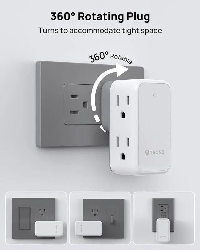 Attention: The plugs can't rotate on hand strength alone, please plug in outlet to rotate