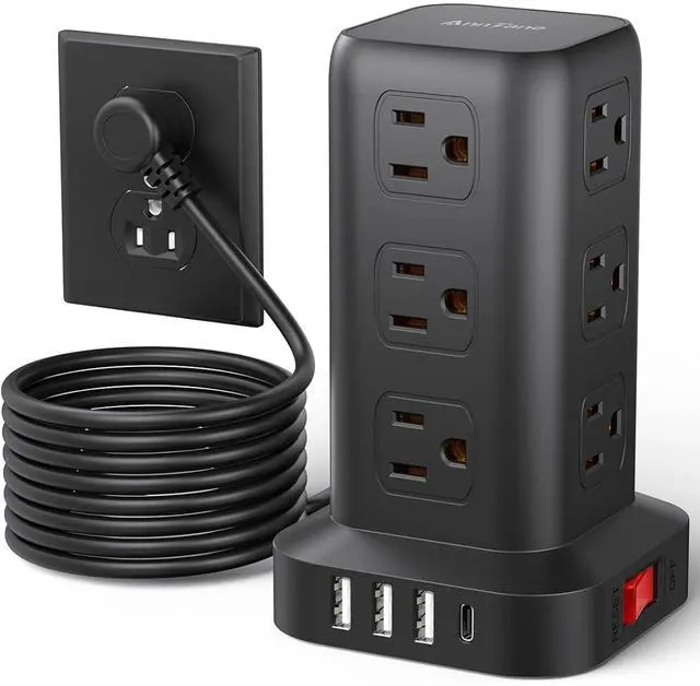 • Safe and Reliable Power Tower: To protect you and your valuable electric equipment, this power strip tower adopts advanced protection technology and has passed FCC, RoHS safety certification, with surge protection, overload protection, lightning protection and short-circuit protection. Major components such as extension cords 10 ft are safely.