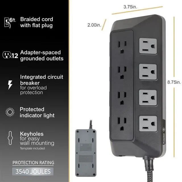 With the convenient angular design of the surge protector, plugging in various bulky adapters at once has never been easier