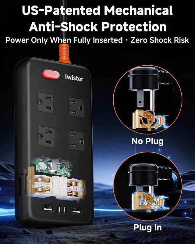 Power flows only when a standard US plug is fully inserted (neutral & hot connected)