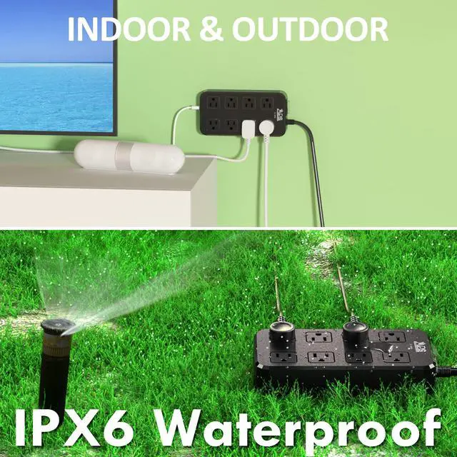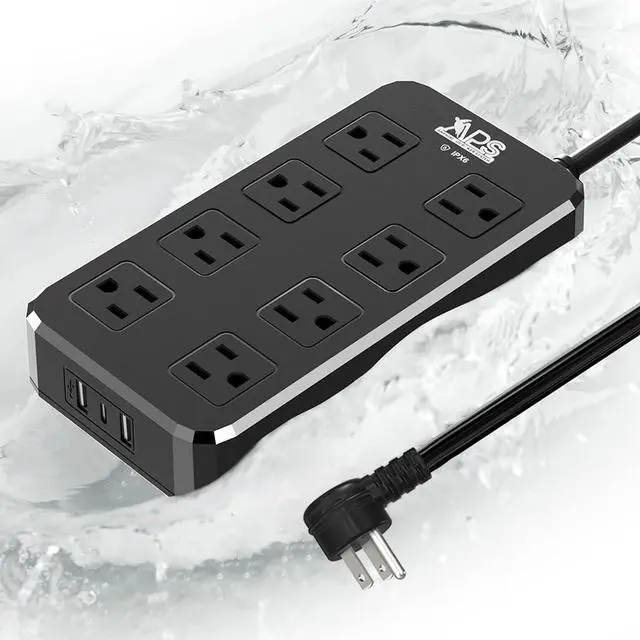 The power strip is water resistant, Waterprood rate is IPX6, You can use it outdoor on rain, But can't be completely submerged in water as it's not IPX8 rated. Please NOTE NOTE NOTE, if you did it, the power strip may not work.