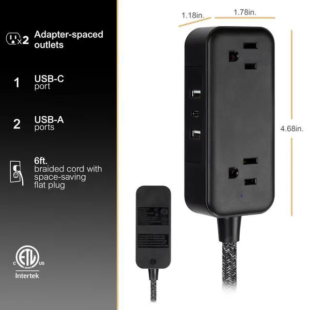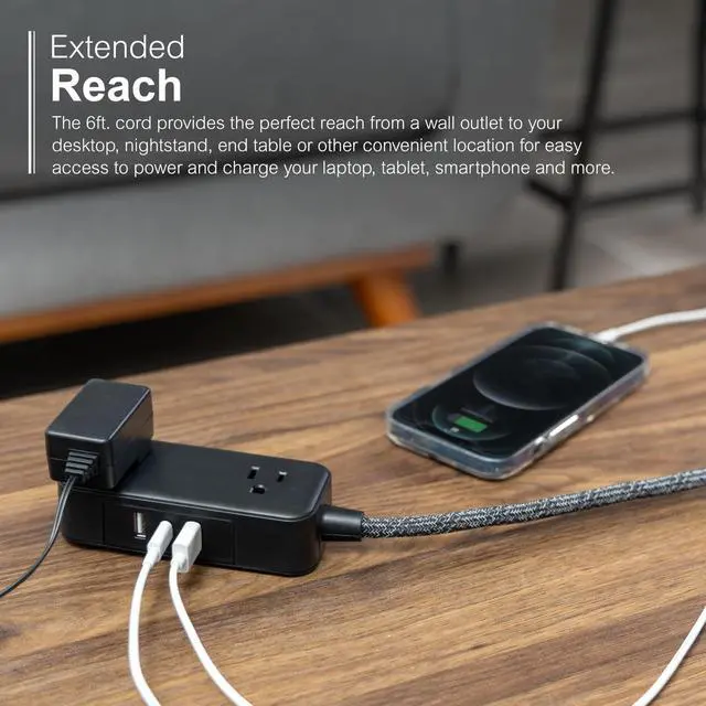 Easily transform one outlet into two USB-A charging ports, one USB-C charging port and two adapter-spaced grounded outlets for the perfect home or office power hub.