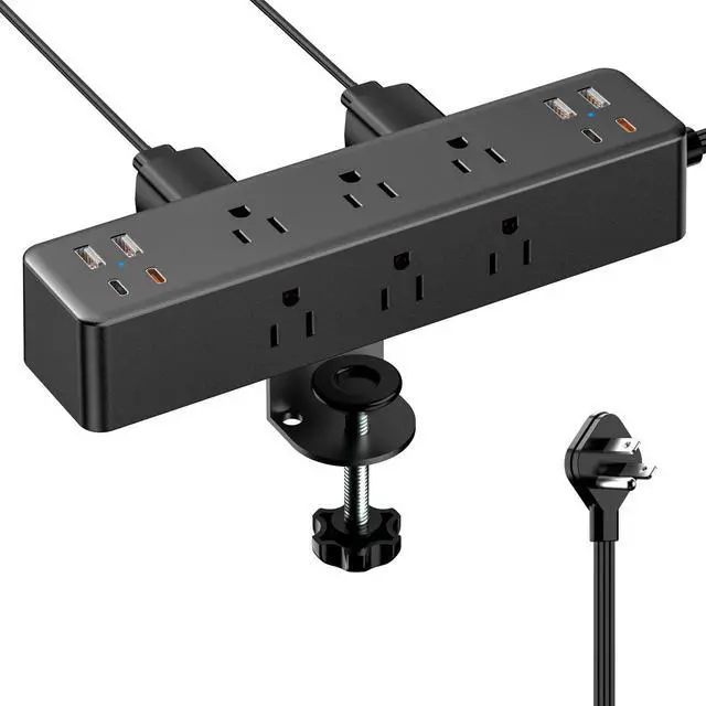 Desk Clamp Power Strip for Improved Desk Organization, USB Power Strip, Office Desk Accessories