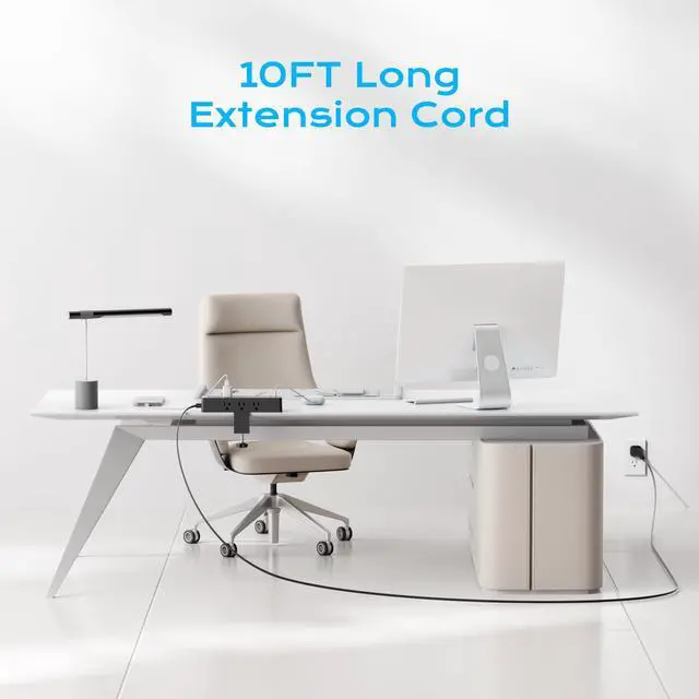 The 3-sided space-saving design of the clamp power strip ensures your desk organization and tidy workspace.