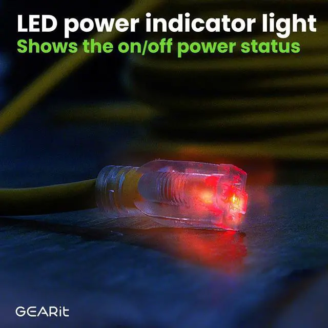 Easy and Safe to Use in the Dark - The bright jacket color combines with built-in LED indicators on the 3-prong connectors to make this extension cord the perfect solution in dark environments, from overcast conditions to nighttime use. The color helps prevent tripping in grass and on cluttered floors, and the light always lets you know when power is flowing.
