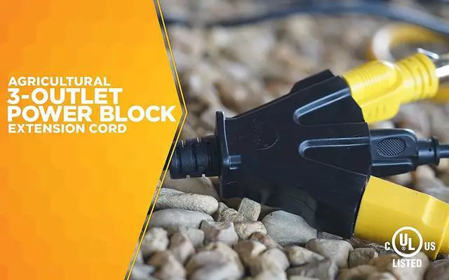 Flexible Farm Extension Cord: This Woods AgriPro Extension Cord is water and oil resistant, features tri-tap outlets, and remains flexible in all weather conditions