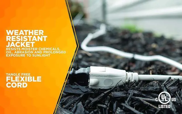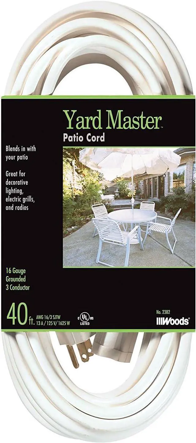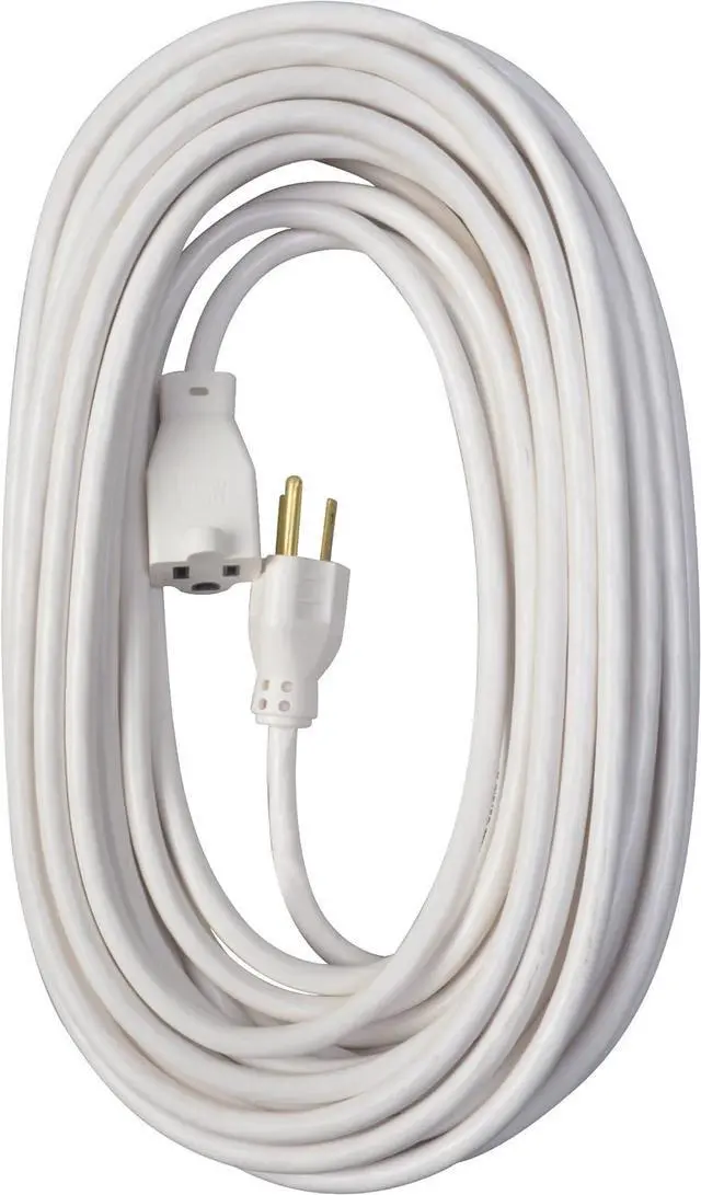 Discreet Outdoor Power: The Southwire Outdoor Extension Cord features a white jacket that blends with patios and decks, and a flexible SJTW extension design for durability