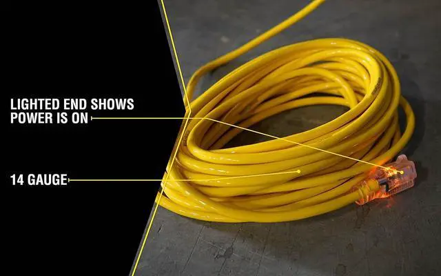 Reliable Jobsite Performance: The Southwire Yellow Jacket Extension Cord features a rugged light indicator cord design and SJTW extension jacket ideal for tough outdoor tasks