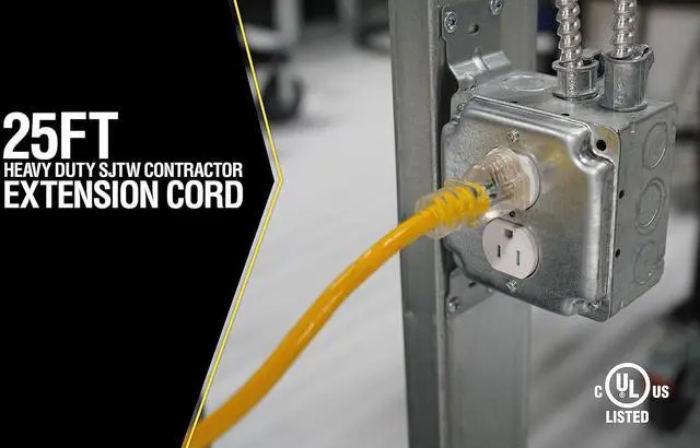 Durable Outdoor Power: The Southwire Yellow Jacket Extension Cord features rugged plugs and a weatherproof extension design with SJTW extension jacket for tough jobsite conditions