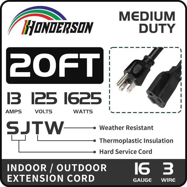 INDOOR OUTDOOR POWER CORD- Perfectly for your household appliances, generator, HEV, DIY electric tools, lawn mower, pressure washer, Christmas and Spooky Halloween light system.