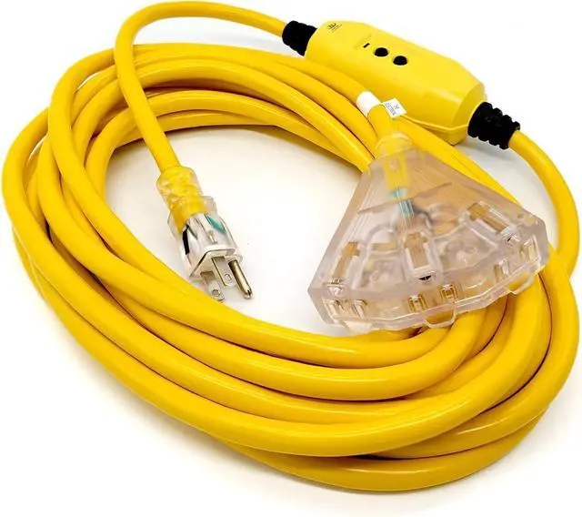 25 ft GFCI Extension Cord - 12 Gauge Outdoor Extension_Cord - Lighted Mulitiple Outlets by Watt's Wire - 25' 12-Gauge Grounded 15 Amp Cord - GFCI Cord Outdoor - extensiones electricas