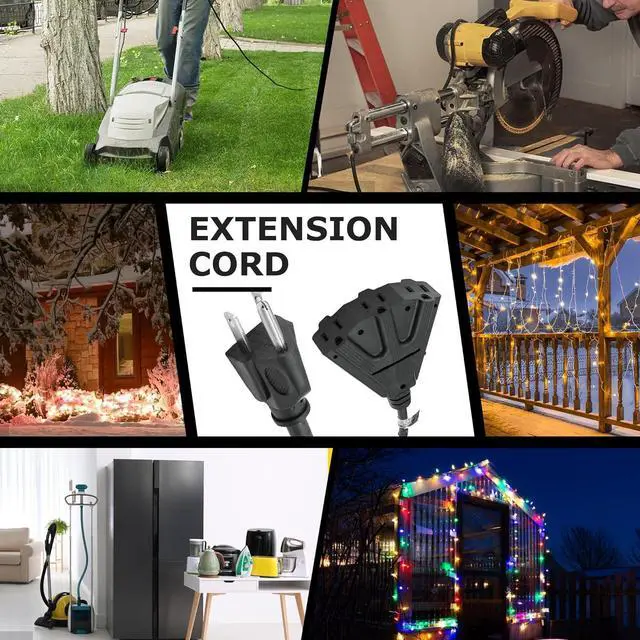 Versatile Power Solution: This UL-certified SJTW extension cord features three interfaces, enabling simultaneous power supply to three appliances. Ideal for high-power equipment in various outdoor conditions like lawn mowers and Christmas lights, it also suits indoor use with appliances such as microwaves and heaters.