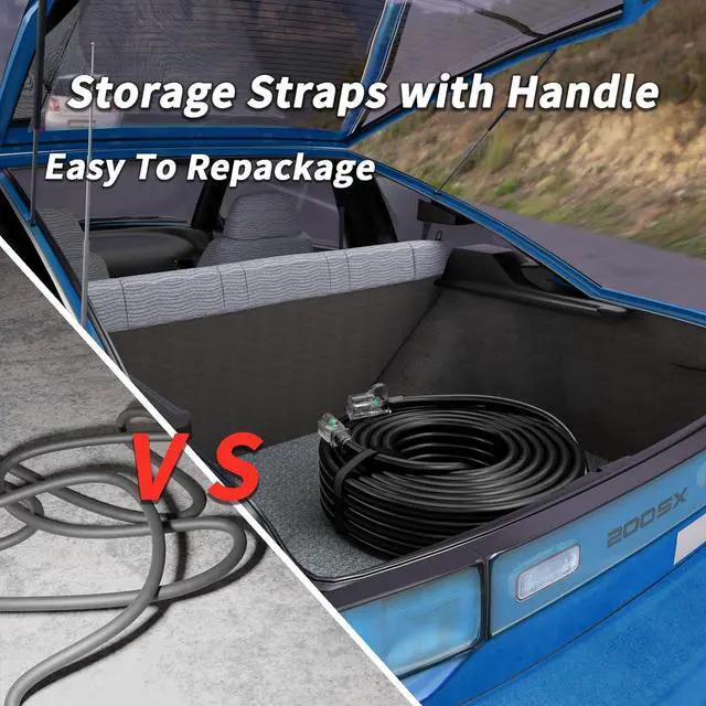 Reliability: You will get 100ft extension cord and Storage Straps packing