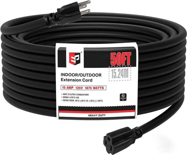 Heavy Duty Extension Cord - 15 amps, 125 volts, 1875 watts, 5-15P/R, 12 gauge heavy duty cord with pure copper wire.