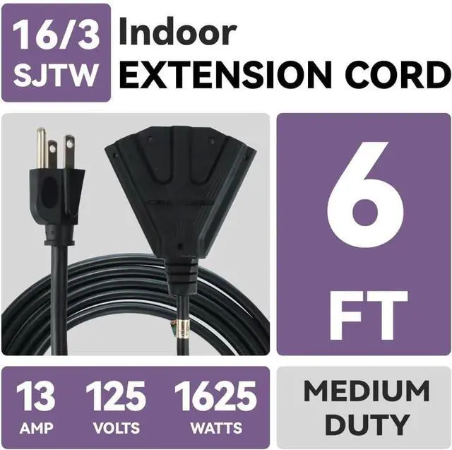 Reinforced Blades - Allows for more bending without fracture. 16 Gauge 3 wire, 13 amp, 125 volt, 1625 watt.