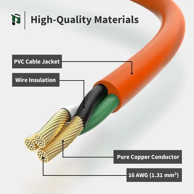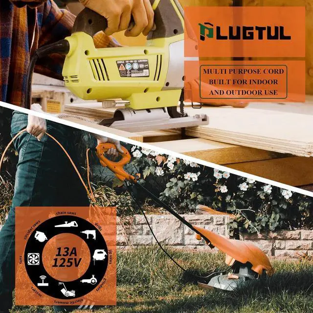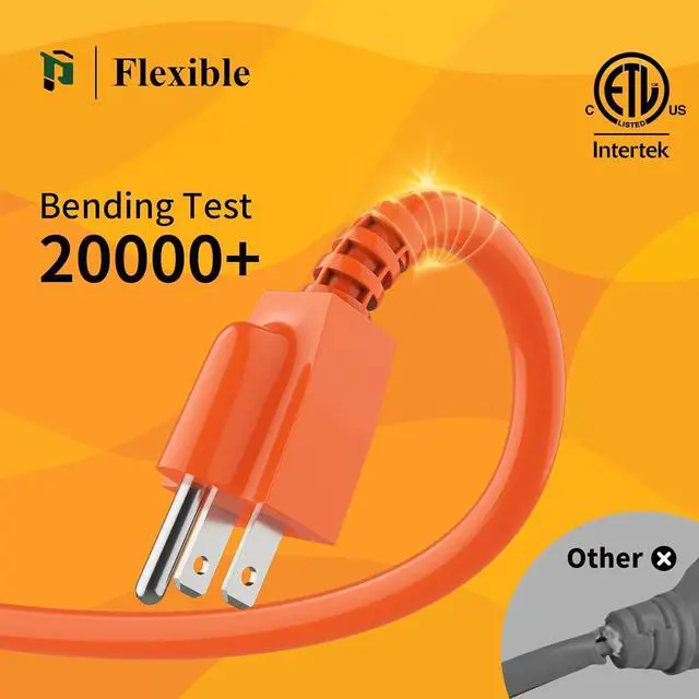 Bright Color Outdoor extension cords have highly visible orange jacket that provides extra safety to prevent you from tripping while working in the yard.