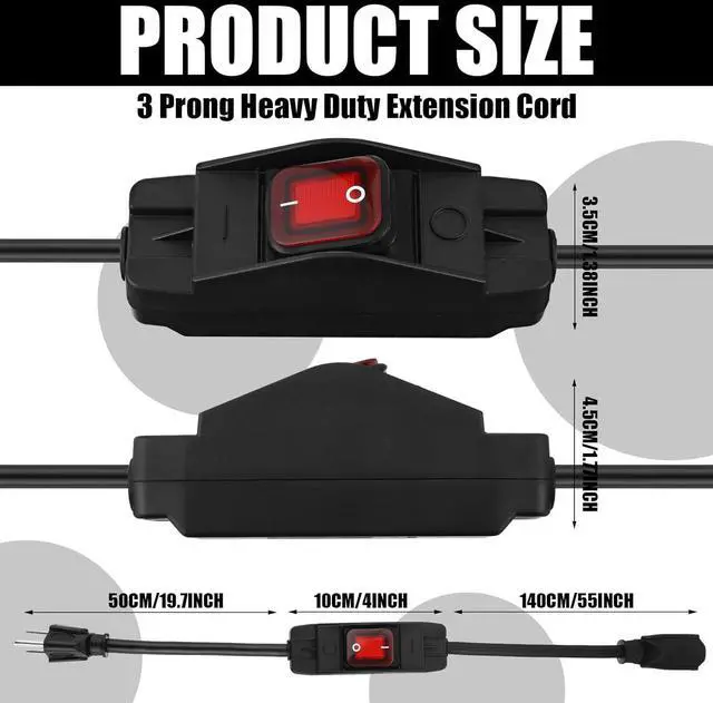 Switch Supplement: the 3 prong extension cord with one key control switch is about 45 cm/ 1.5 ft in length, and can extend the use distance of various electrical appliances, which can help say goodbye to unsafe plugging
