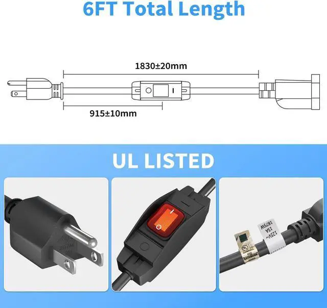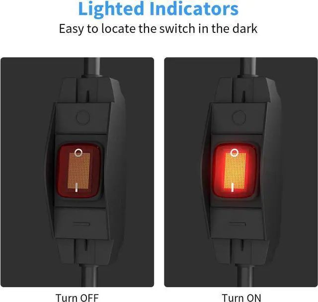 Switch Supplement: On off switch built in the middle of the extension cord, the red LED lights up when you press the switch button, making it easy to locate even in the dark