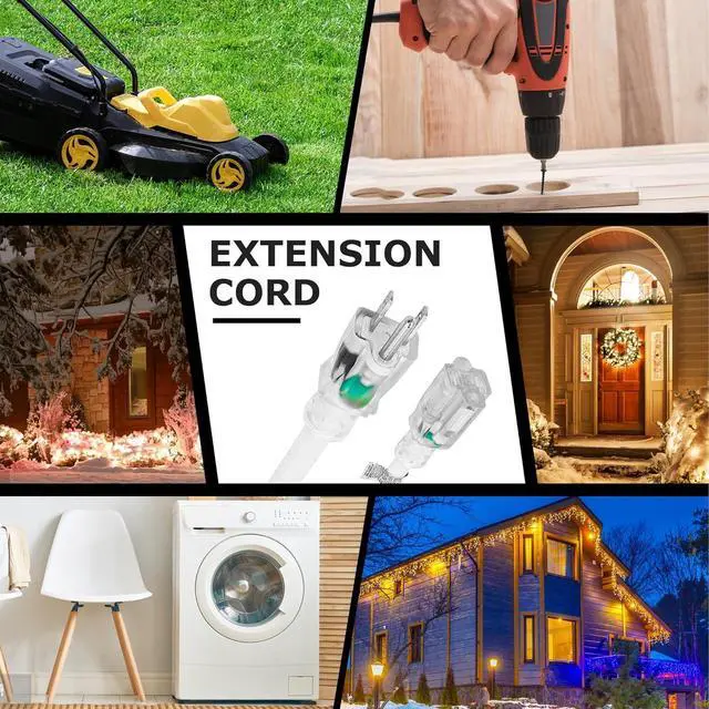 Versatile Use: Our UL-certified SJTW extension cord is ideal for high-power outdoor equipment like lawn mowers, chainsaws, and Christmas lights, offering reliability in diverse weather conditions. The lighted end indicates power status, enhancing safety. And is equally suitable for indoor appliances such as microwaves, heaters, and computers.